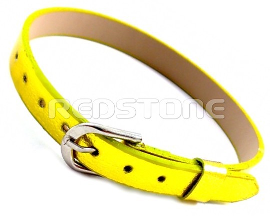 Náramok z pvc kože. Náramok určený na kombináciu s navliekacími príveskami, prípadne na samotné nosenie bez príveskov. Farba: žltý lesk. Šírka: 8 mm. Dĺžka: náramku: 145 - 185 mm.