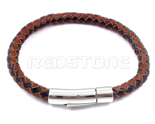 Kožený náramok v kombinácii s chirurgickou oceľou, Dĺžka: 200 mm, Šírka: 6/8 mm, šperk z pravej kože