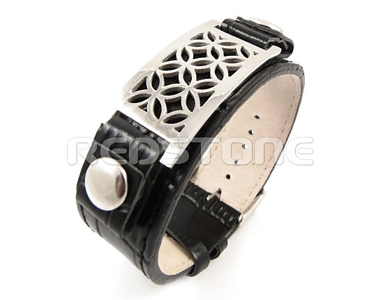 Náramok z pravej kože v kombinácii s lesklou chirurgickou oceľou. Dĺžka: 160 - 195 mm. Šírka: 23 mm.