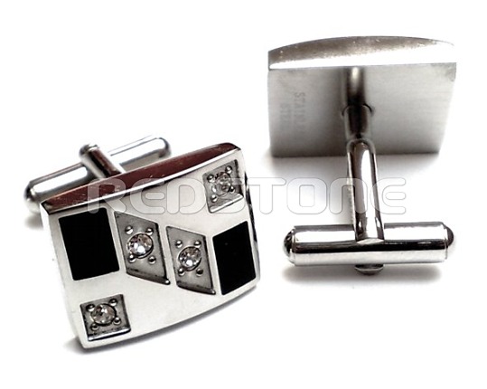 Manžetové gombíky z chirurgickej ocele so zirkónmi, cena za pár. Rozmer: 14 x 19 mm. Manžetové gombíky z chirurgickej ocele v lesklom prevedení.