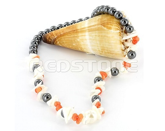 Náhrdelník - Bižutéria. Dĺžka: 480 mm. Šírka: 8 mm. Mušľa nieje súčasťou náhrdelníka, slúži len ako dekorácia.
