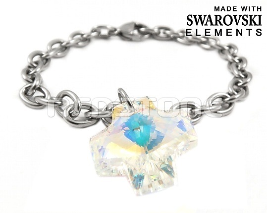 Náramok z chirurgickej ocele v lesklom prevedení v kombinácii so Swarovského krištáľom. Dĺžka náramku: 190 mm. Šírka: 6 mm. Rozmer krištáľu: 20 x 20 mm. Swarovski krištáľ vo farbe: Crystal AB.