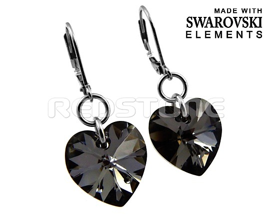 Náušnice z chirurgickej ocele v kombinácii so Swarovského krištáľom. Rozmer srdiečka: 14,4 x 14 mm. Celková dĺžka náušníc: 32 mm. Swarovski krištáľ vo farbe: Crystal Silver Night.