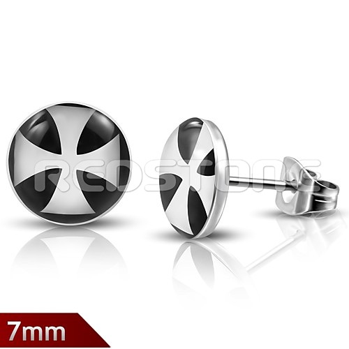 Náušnice s keltským krížom. Náušnice z chirurgickej ocele v kombinácii so živicou. Priemer náušníc: 7 mm