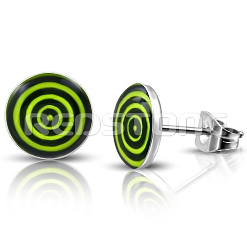 Náušnice z chirurgickej ocele v kombinácii so živicou. Priemer náušníc: 7 mm