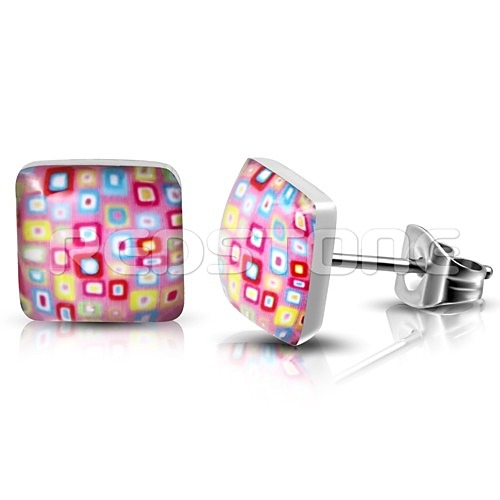 Farebné puzetové náušnice. Náušnice z chirurgickej ocele v kombinácii so živicou. Rozmer náušníc: 7 x 7 mm