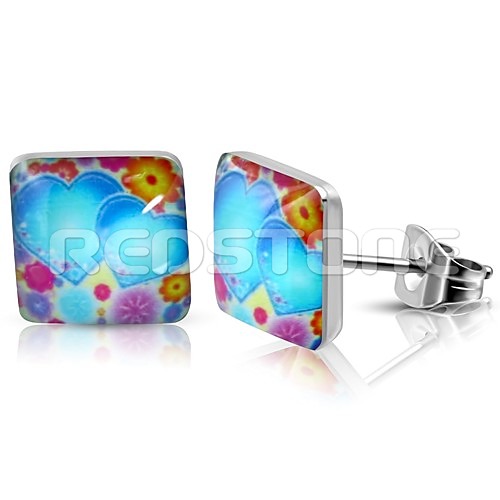 Farebné puzetové náušnice. Náušnice z chirurgickej ocele v kombinácii so živicou. Rozmer náušníc: 7 x 7 mm