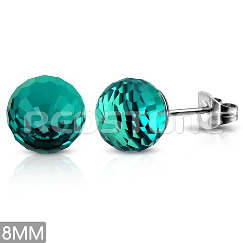 Náušnice z chirurgickej ocele v kombinácii so sklenenou disco guľou Priemer náušníc: 8 mm