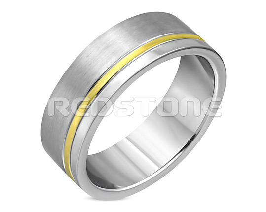 Obrúčka kombinovaná s matnou, lesklou a pozlátenou chirurgickou oceľou, Šírka šperku: 8 mm