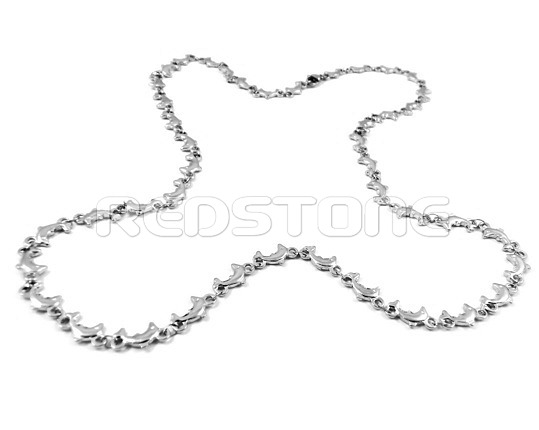 Retiazka z chirurgickej ocele v lesklom prevedení. Dĺžka retiazky: 600 mm. Šírka retiazky: 6 mm. Retiazka s delfínmi.