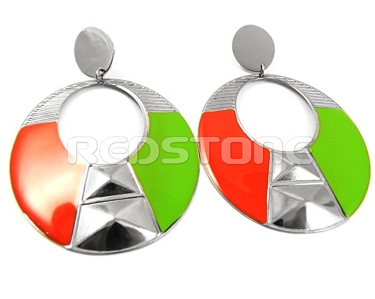 Farebné náušnice z chirurgickej ocele v lesklom prevedení. Rozmer náušníc: 53 x 64 mm. Celková dĺžka náušníc: 83 mm. Upozornenie: náušnice vačších rozmerov.