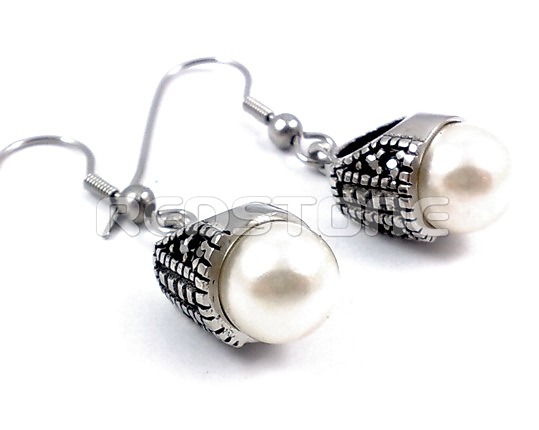 Náušnice z chirurgickej ocele. Rozmer náušníc: 9 x 18 mm. Šperk z chirurgickej ocele v lesklom prevedení v kombinácii s pvc perlou.
