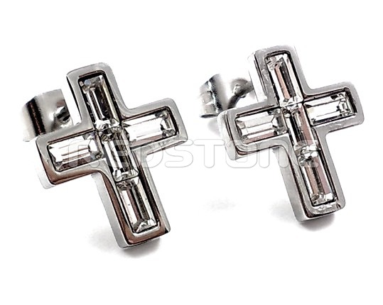 Náušnice z chirurgickej ocele. Rozmer: 12 x 14 mm. Šperk z chirurgickej ocele v lesklom prevedení v kombinácii so zirkónmi.