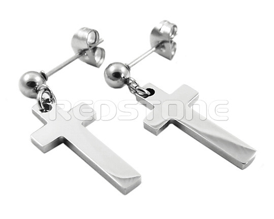 Náušnice z chirurgickej ocele v lesklom prevedení, náušnice s krížikmi. Rozmer náušníc: 9 x 27 mm