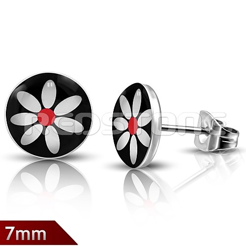 Puzetové náušnice s kvetom. Náušnice z chirurgickej ocele v kombinácii so živicou. Priemer náušníc: 7 mm