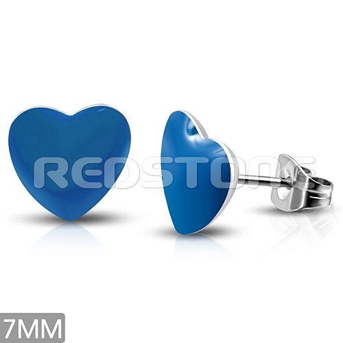 Naušnice z chirurgickej ocele s tmavo modrým srdiečkom. Rozmer srdiečka: 7 x 7 mm.