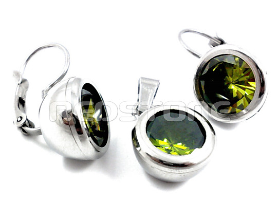 Komplet z chirurgickej ocele so zirkónmi. Rozmer prívesku: 22 x 12 mm, Priemer otvoru na retiazku: 4 mm, Priemer náušníc: 13 mm. Sada šperkov z chirurgickej ocele v lesklom prevedení.