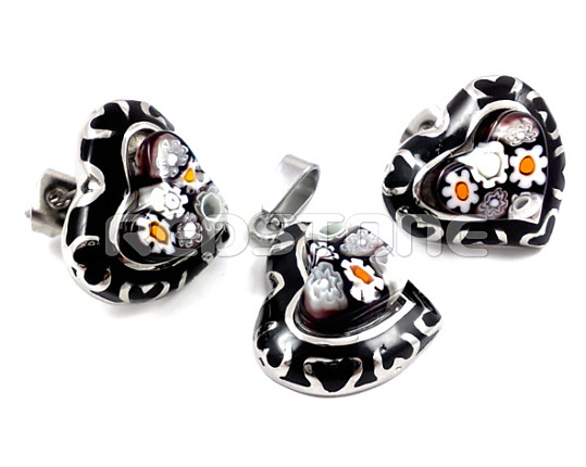 Komplet z chirurgickej ocele v kombinácii so živicou. Rozmer prívesku: 24 x 24 mm, Priemer otvoru na retiazku: 3 mm, Rozmer náušníc: 24 x 24 mm. Sada šperkov z chirurgickej ocele v lesklom prevedení.