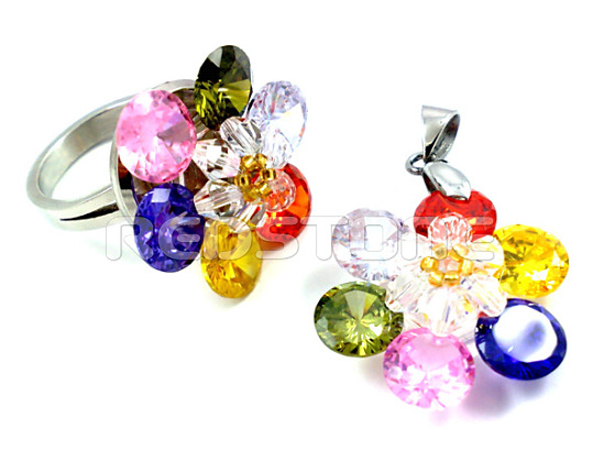 Komplet z chirurgickej ocele so zirkónmi. Rozmer prívesku: 35 x 25 mm, Veľkosť prsteňa: 57, Šírka prsteňa: 3 / 25 mm. šperky z chirurgickej ocele v lesklom prevedení
