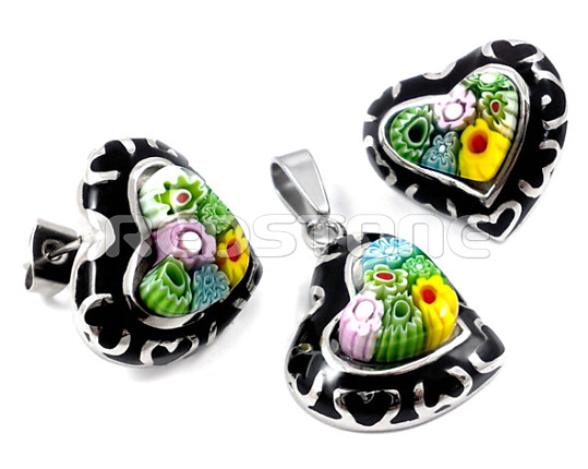 Komplet z chirurgickej ocele v kombinácii so živicou. Rozmer prívesku: 20 x 16 mm, Priemer otvoru na retiazku: 3 mm, Rozmer náušníc: 20 x 16 mm. Sada šperkov z chirurgickej ocele v lesklom prevedení.
