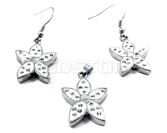 Komplet z chirurgickej ocele. Rozmer prívesku: 19 x 25 mm. Rozmer náušníc: 19 x 25 mm. Sada šperkov z chirurgickej ocele v lesklom prevedení v kombinácii so zirkónmi.