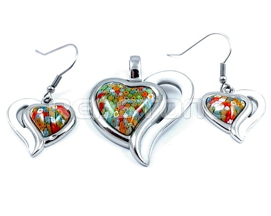 Komplet z chirurgickej ocele v kombinácii so živicou. Rozmer prívesku: 32 x 32 mm, Priemer otvoru na retiazku: 4 mm, Rozmer náušníc: 18 x 18 mm. Sada šperkov z chirurgickej ocele v lesklom prevedení.