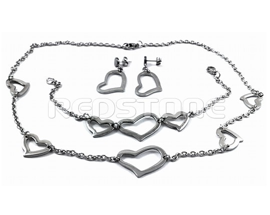 Komplet z chirurgickej ocele. Dĺžka náhrdelníka: 520 mm, Šírka retiazky: 3 mm, Dĺžka náramku 195 mm, Rozmer náušníc: 18 x 40 mm. Sada šperkov z chirurgickej ocele v lesklom prevedení.