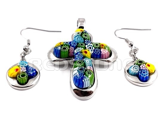 Komplet z chirurgickej ocele v kombinácii so živicou. Rozmer prívesku: 35 x 50 mm, Priemer otvoru na retiazku: 4 mm, Priemer náušníc: 15 mm. Sada šperkov z chirurgickej ocele v lesklom prevedení.