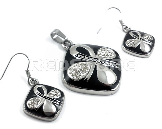 Komplet z chirurgickej ocele. Rozmer prívesku: 30 x 35 mm. Rozmer náušníc: 17 x 20 mm. Sada šperkov z chirurgickej ocele v lesklom prevedení v kombinácii so zirkónmi.