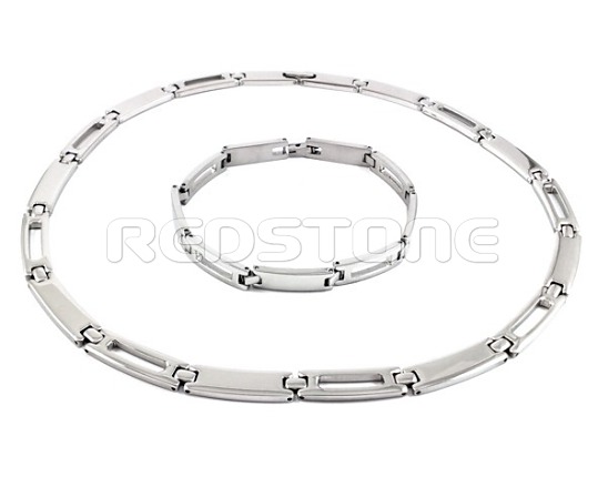 Komplet z chirurgickej ocele. Dĺžka náhrdelníka: 480 mm. Dĺžka náramku: 210 mm. Šírka šperkov: 8 mm. Sada šperkov z chirurgickej ocele v lesklom prevedení.