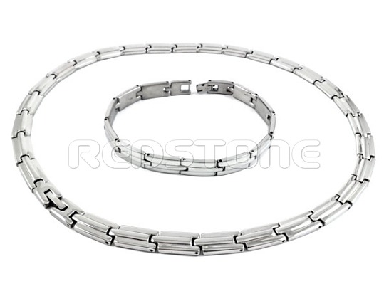 Komplet z chirurgickej ocele. Dĺžka náhrdelníka: 480 mm. Dĺžka náramku: 210 mm. Šírka šperkov: 8 mm. Sada šperkov z chirurgickej ocele v lesklom prevedení.