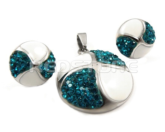 Sada šperkov z chirurgickej ocele. Priemer prívesku: 25 mm. Priemer náušníc: 14 mm. Šperky v kombinácii so zirkónmi.