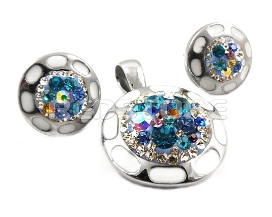 Sada šperkov z chirurgickej ocele. Priemer prívesku: 24 mm. Priemer náušníc: 14 mm. Šperky v kombinácii so zirkónmi.