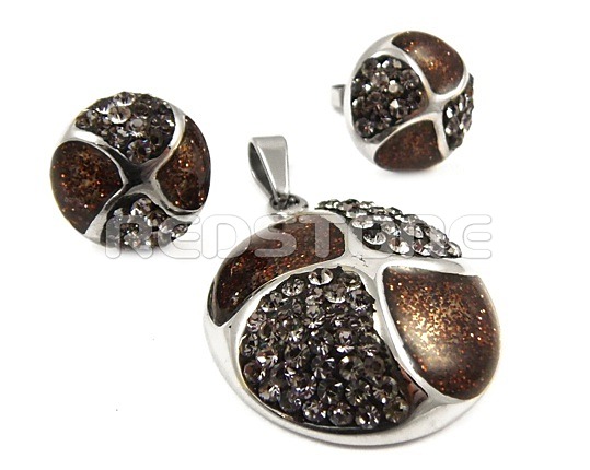 Sada šperkov z chirurgickej ocele. Priemer prívesku: 25 mm. Priemer náušníc: 14 mm. Šperky v kombinácii so zirkónmi.