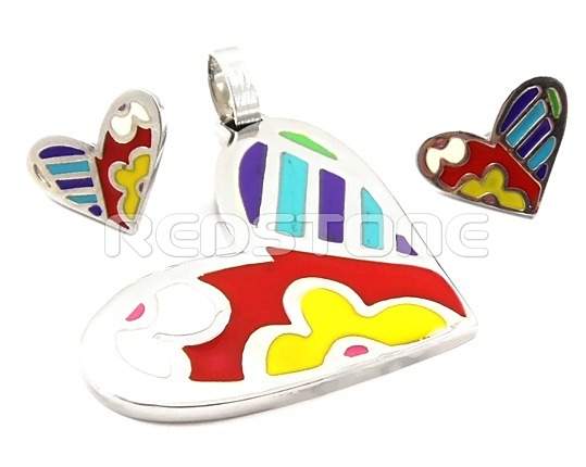 Sada šperkov z chirurgickej ocele. Rozmer prívesku: 50 x 45 mm. Rozmer náušníc: 20 x 17 mm. Farebné šperky z chirurgickej ocele v lesklom prevedení.