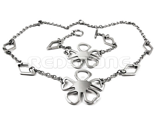 Komplet z chirurgickej ocele. Dĺžka náhrdelníka: 560 mm, šírka retiazky: 4 mm. Dĺžka náramku: 190 mm, šírka náramku: 4 mm. Rozmer kvetu 33 x 39 mm. Šperky z chirurgickej ocele v lesklom prevedení.