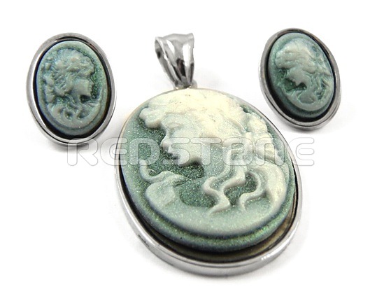 Sada šperkov z chirurgickej ocele. Rozmer prívesku: 23 x 34 mm. Rozmer náušníc: 12 x 17 mm.