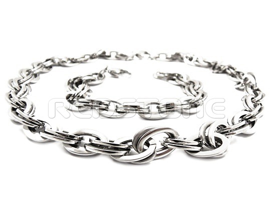 Komplet z chirurgickej ocele. Dĺžka retiazky: 490 mm, šírka retiazky : 10 mm. Dĺžka náramku: 210 mm, šírka náramku: 10 mm, šperky z chirurgickej ocele v lesklom prevedení