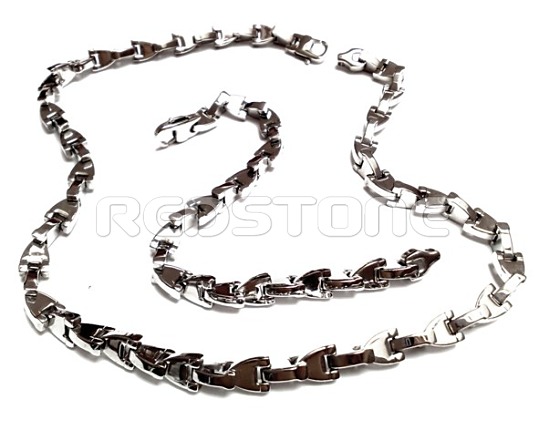 Komplet z chirurgickej ocele. Dlžka retiazky: 550 mm, Šírka retiazky: 8 mm, Dĺžka náramku: 230 mm, Šírka náramku 8 mm. Sada šperkov z chirurgickej ocele v lesklom prevedení.