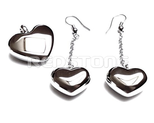 Komplet z chirurgickej ocele. Rozmer prívesku: 24 x 24 mm, Rozmer náušníc: 18 x 15 mm. Dĺžka retiazky: 28 mm. Sada šperkov z chirurgickej ocele v lesklom prevedení.