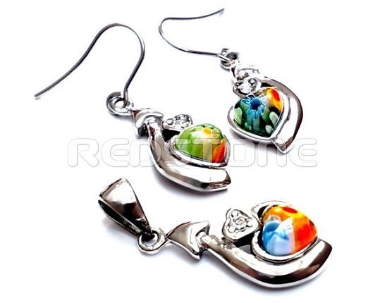 Komplet z chirurgickej ocele v kombinácii so živicou a zirkónmi obsahujúci prívesok a náušnice: Rozmer prívesku: 8 x 22 mm, Rozmer náušnic: 7 x 22 mm. Sada šperkov z chirurgickej ocele v lesklom prevedení.