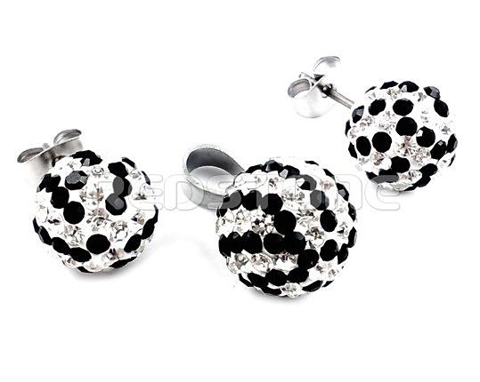 Sada šperkov z chirurgickej ocele. Prieme prívesku: 12 mm. Priemer náušníc: 9 mm. Šperky v kombinácii so zirkónmi.