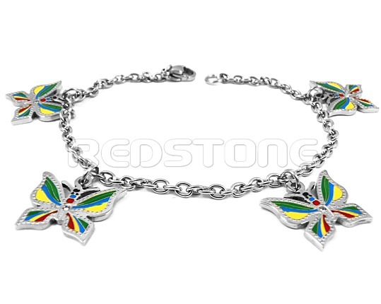 Náramok z chirurgickej ocele. Dĺžka: 190 mm. Šírka retiazky: 3 mm. Rozmer motýľov: 17 x 16 mm. Šperk z chirurgickej ocele v lesklom prevedení.