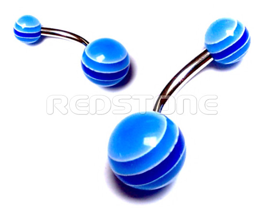 Piercing z chirurgickej ocele v kombinácii s bioplastom - UV guličky, piercing do pupka. Rozmer: 8 x 23 mm, Hrúbka tyčky: 1,6 mm, Priemer vačšej guličky: 8 mm, Priemer menšej guličky: 5 mm.