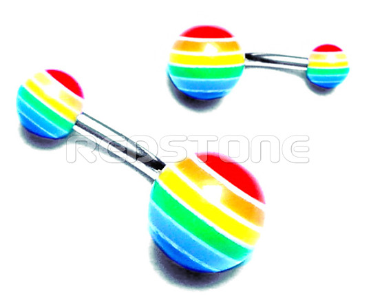 Piercing z chirurgickej ocele v kombinácii s bioplastom - UV guličky, piercing do pupka. Rozmer: 8 x 23 mm, Hrúbka tyčky: 1,6 mm, Priemer vačšej guličky: 8 mm, Priemer menšej guličky: 5 mm.