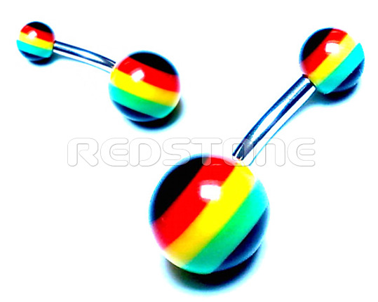 Piercing z chirurgickej ocele v kombinácii s bioplastom - UV guličky, piercing do pupka. Rozmer: 8 x 23 mm, Hrúbka tyčky: 1,6 mm, Priemer vačšej guličky: 8 mm, Priemer menšej guličky: 5 mm.