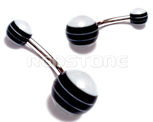 Piercing z chirurgickej ocele v kombinácii s bioplastom - UV guličky, piercing do pupka. Rozmer: 8 x 23 mm, Hrúbka tyčky: 1,6 mm, Priemer vačšej guličky: 8 mm, Priemer menšej guličky: 5 mm.