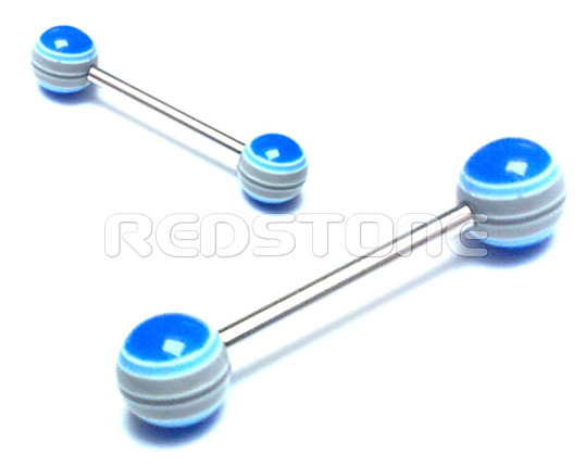 Piercing z chirurgickej ocele v kombinácii s bioplastom - UV guličky, piercing do jazyka. Priemer guličky: 6 mm, Hrúbka tyčky: 1,6 mm, Dĺžka tyčky: 16 mm.