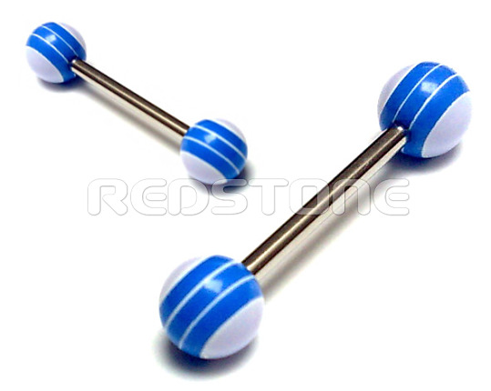 Piercing z chirurgickej ocele v kombinácii s bioplastom - UV guličky, piercing do jazyka. Priemer guličky: 6 mm, Hrúbka tyčky: 1,6 mm, Dĺžka tyčky: 16 mm.