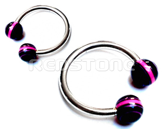 Piercing z chirurgickej ocele v kombinácii s bioplastom, UV guličky. Priemer kruhu: 13 mm, Priemer guličky: 4 mm, Šírka tyčky: 1,2 mm.